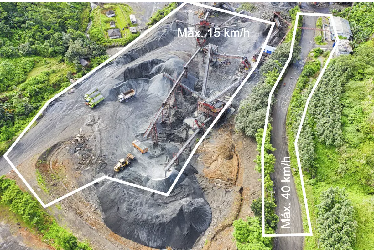 O controle de velocidade dentro de áreas delimitadas garante que os veículos estejam operando em conformidade com os limites de velocidade específicos de cada região da mina. Isso reduz o risco de acidentes, colisões e incidentes devido ao excesso de velocidade.